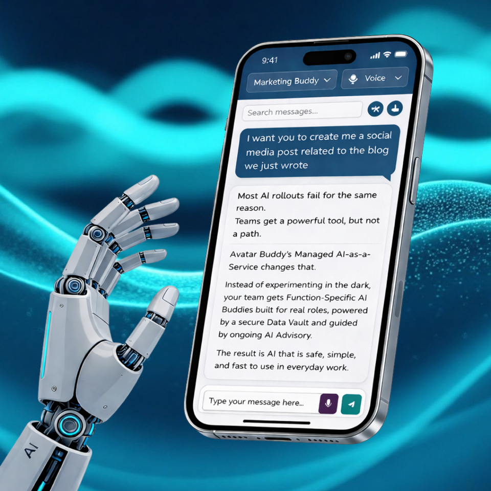 Over the past year, that clarity reshaped how Avatar Buddy showed up in the market. The company repositioned itself around three ideas: function-specific AI agents built for roles like grant writing or operations; small language models and private data vaults that keep customer data secure and under client control; and human AI advisors who guide teams before, during, and after implementation.