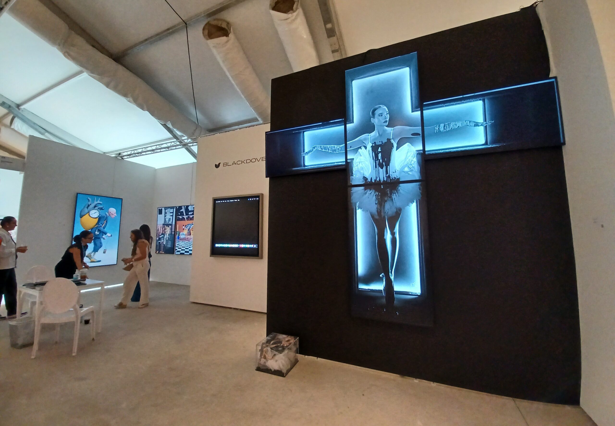 There, several screens displayed the works of local and international artists, represented by Miami-based Blackdove. The exhibition, Code and Canvas: The Digital Art Genome, is an immersive, curated selection of moving-images, generative works, and screen-based art.